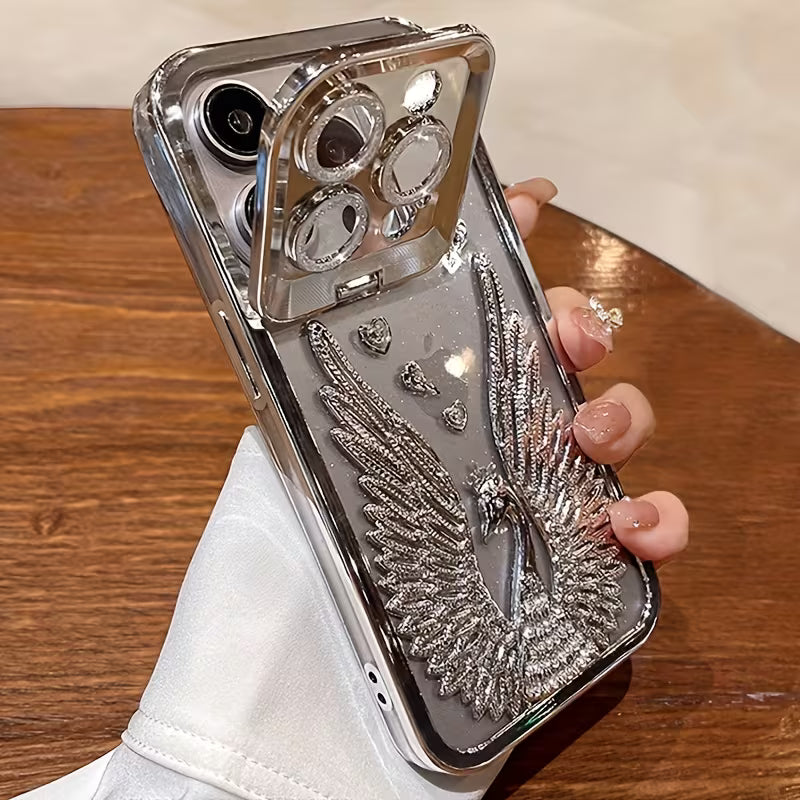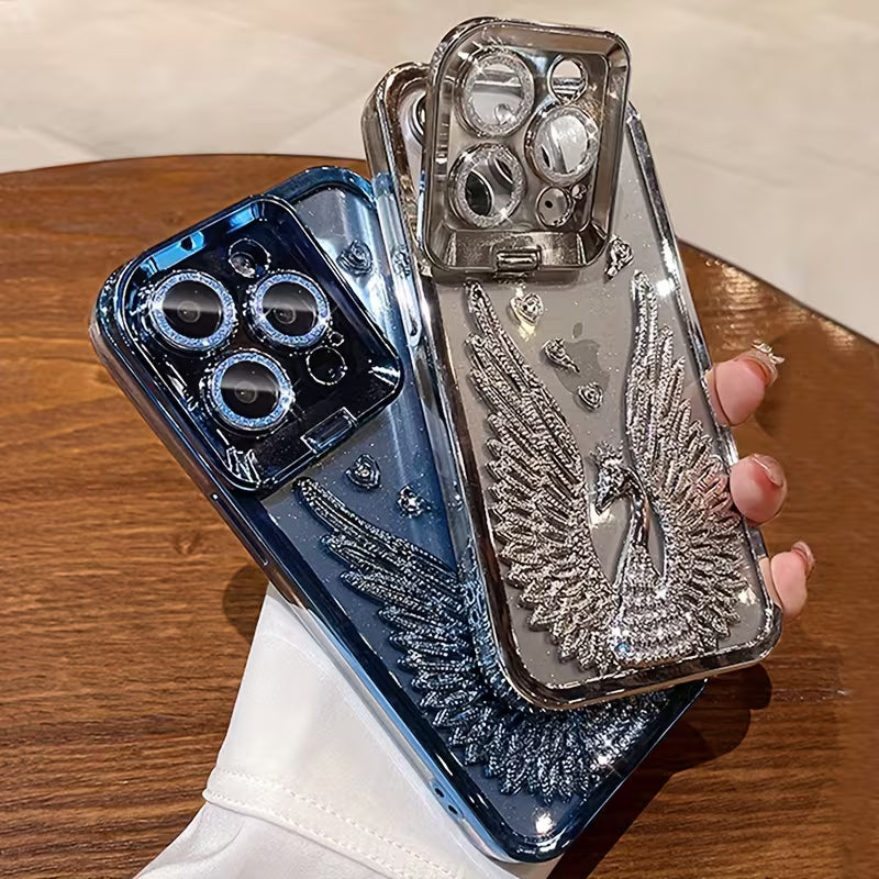 [MELODY SKY] Lens Bracket Suitable For IPhone 15Promax Mobile Phone Case New 14pro Glitter Lens Film Premium Sense IP13 All-inclusive Anti-fall Protective Cover 12 Three-dimensional Feather Wings 11 Net Red Model Niche